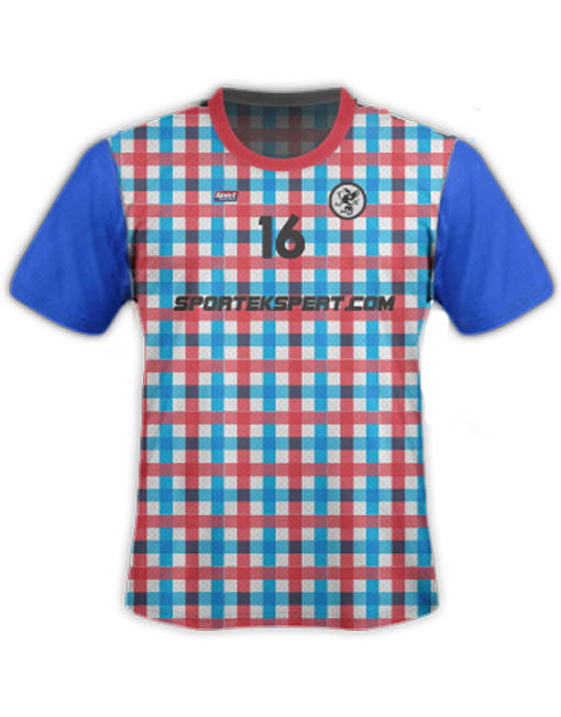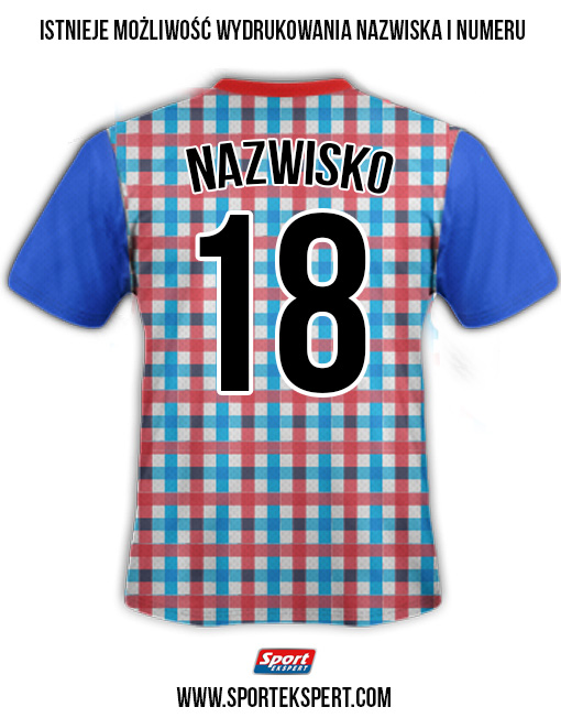 Koszulka o nietypowym wzorze dostępna na zamówienie wraz ze spodenkami i getrami.
