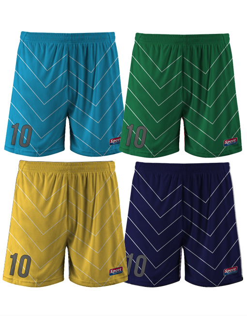 Spodenki piłkarskie z nadrukiem. Możliwe różne warianty kolorystyczne.